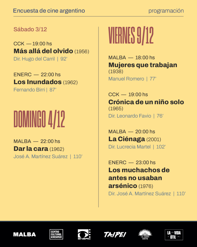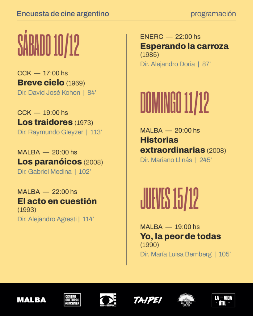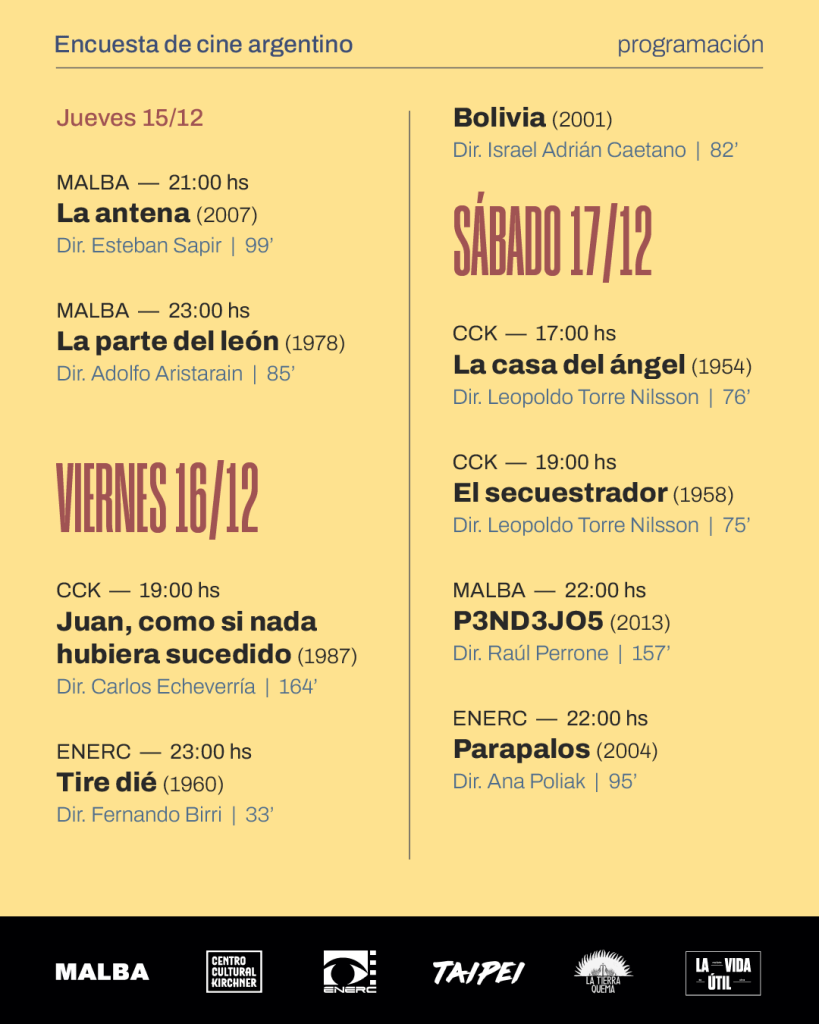 La Encuesta del cine argentino es una invitación al diálogo y al debate sobre el estado actual de nuestro cine. Desde Taipei, La vida útil y La tierra quema lo pensamos como un punto de partida para difundir la importancia de nuestro cine y visibilizar la necesidad de una Cinemateca Nacional.