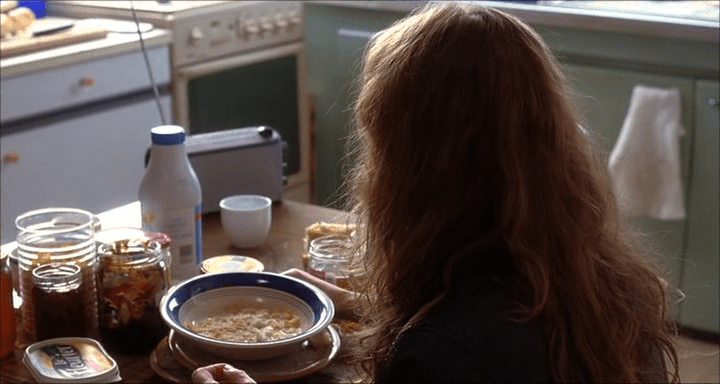 Todxs realizan su vida habitual, una vida standard moderna: el padre va al trabajo para la mantención económica, lxs hijxs al colegio en algún lugar de ese horizonte y la madre…la madre de esta familia tradicional es la que se deja ir en medio de la fortaleza de su rol, la que esconde sus miedos, sus deseos y su furia. ¿Tiene pasado?¿Quién fue antes de ser esta? El personaje de Huppert conforma el hogar, es quien le da vida a cada espacio de esa casa: al baño compartido, a la mesa, al sol en reposera en el patio. Pero este personaje posee, como toda madre encuadrada entre los umbrales de una casa, una violencia contenida dentro de tanta ternura.