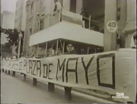 Del rostro de un soldado a las botas de un grupo ubicado en fila. De frente, un uniformado da la orden y el resto comienza a marchar a un mismo ritmo, con sus espaldas erguidas y paso redoblado, mientras se escucha una banda militar. Una placa contextualiza: «Entre 1976 y 1983 los gobiernos militares hicieron ‘desaparecer’ a muchos miles de ciudadanos argentinos». La música irrumpe, la canción «Todo es ausencia», interpretada por Ana Belén acompaña los pañuelos blancos y los pasos de sandalias y zapatos que llevan a cabo un recorrido circular alrededor de la Pirámide de Mayo, son lxs familiares de las víctimas que exigen la aparición con vida de sus hijxs y nietxs secuestradxs durante la dictadura cívico militar.
